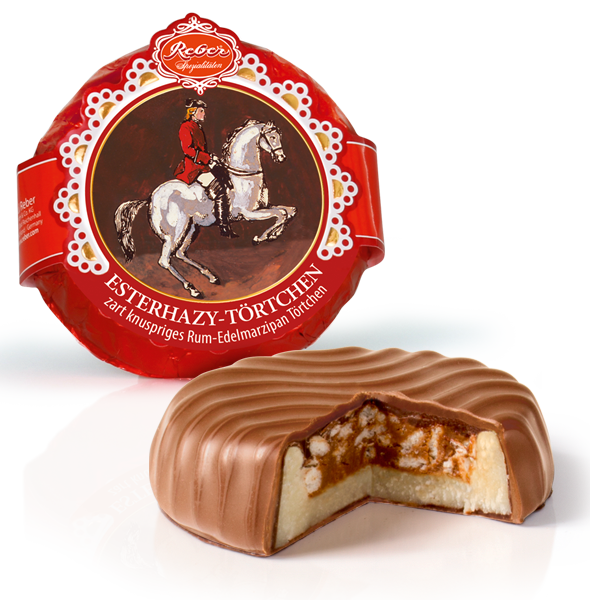 Confiserie-Pasteten höchster Qualität. Das Esterhazy-Törtchen vereint 3erlei Köstlichkeiten: Rum-Edelmarzipan, Nougat und Alpenmilch-Schokolade.
