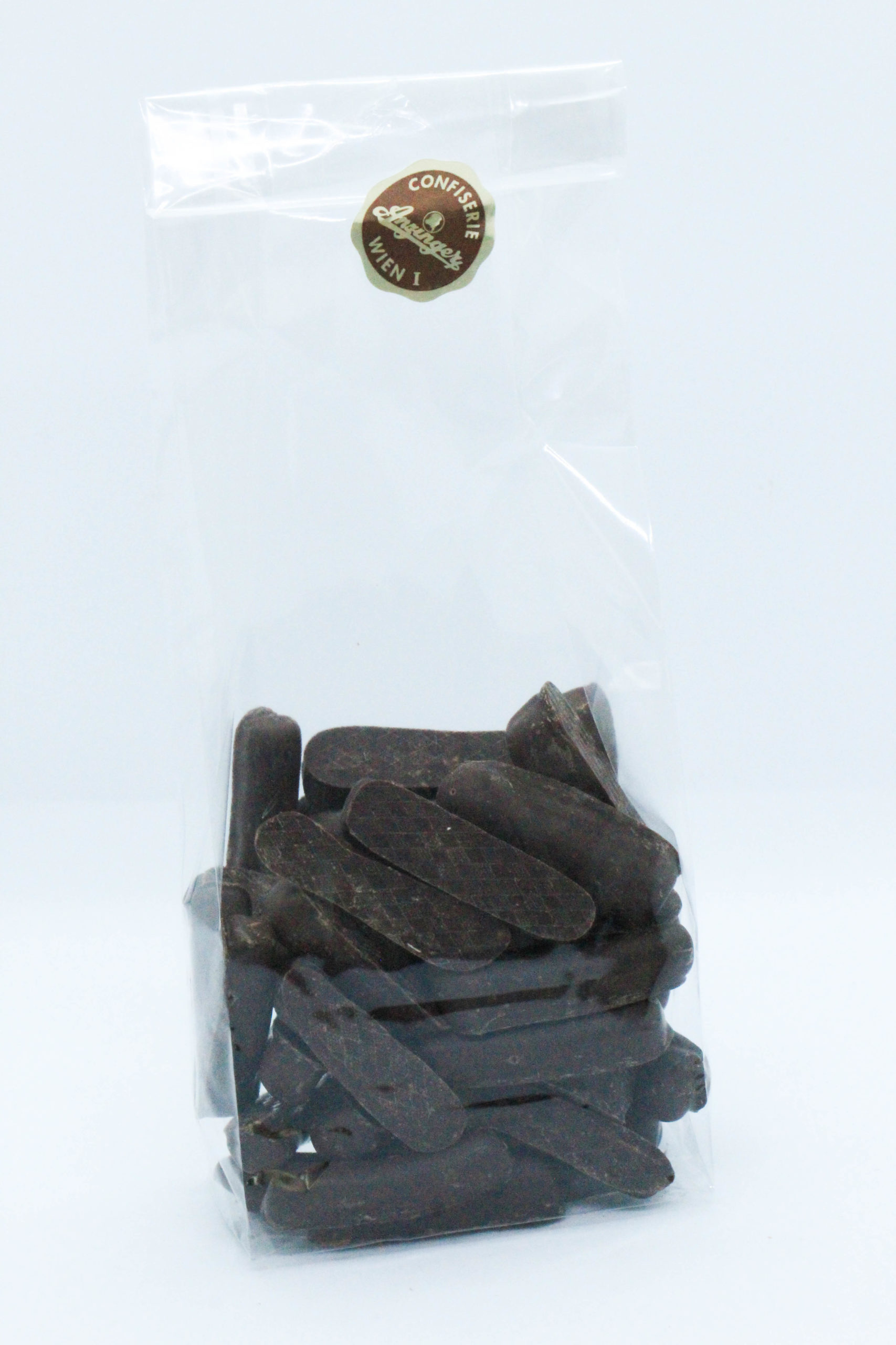 Feine Ingwerstreifen getunkt in Edelbitterschokolade. Die perfekte Kombination von zwei erlesenen Geschmäckern.