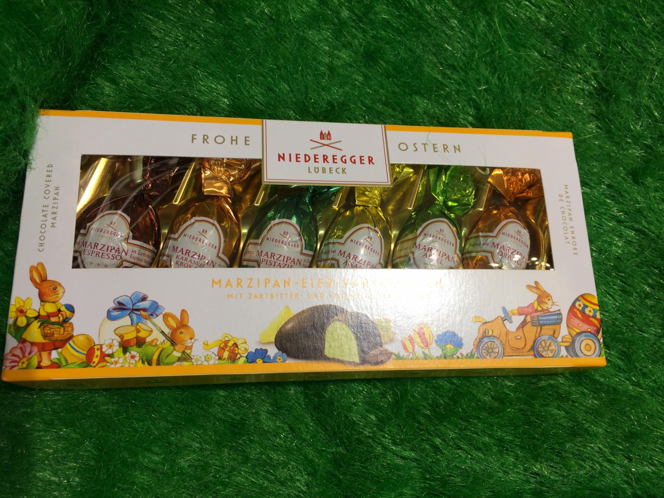 Köstliche Marzipan-Eier in verschiedenen Sorten.