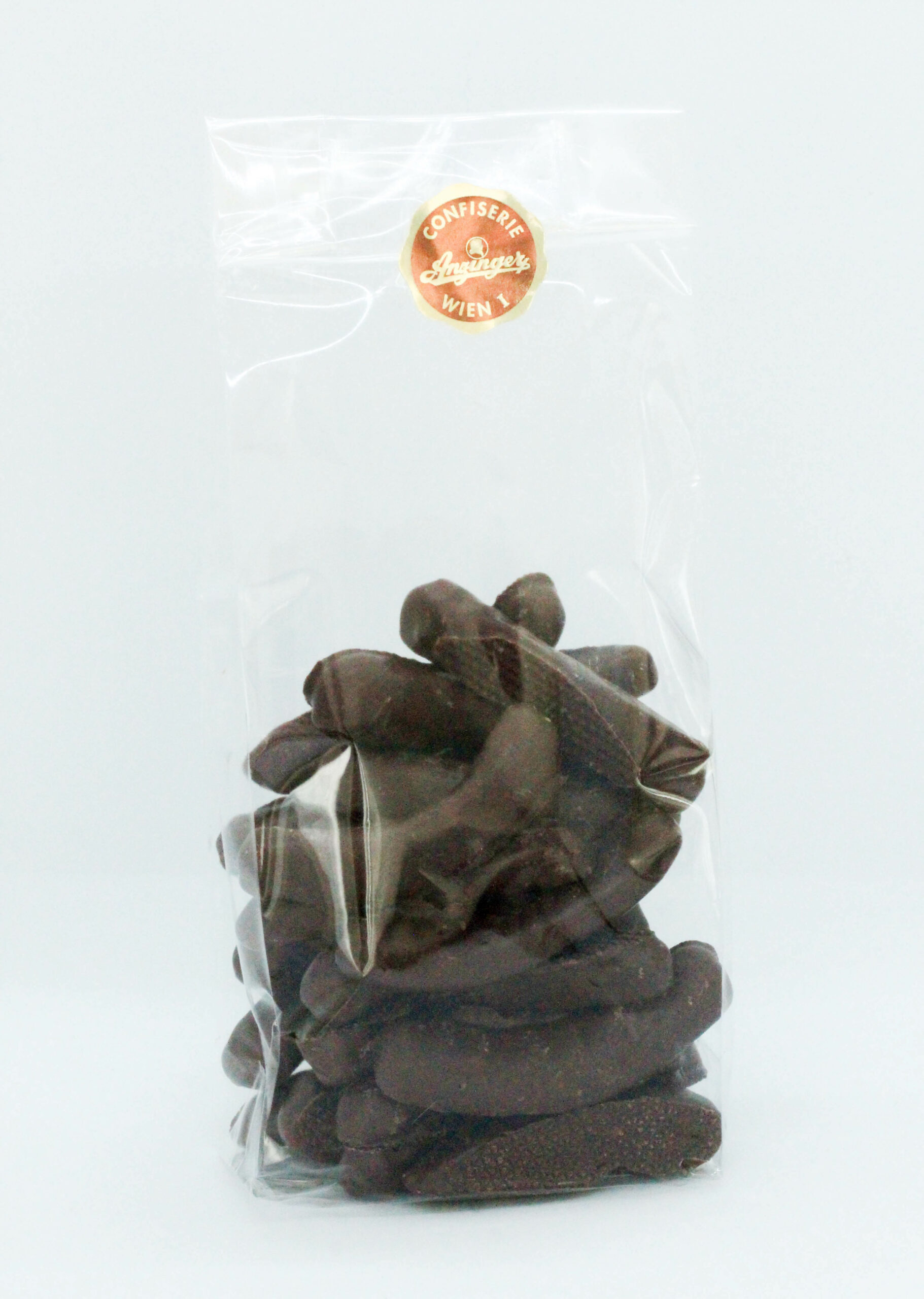 | Zutaten | Kandierte Orangenschalen 51% (Orangenschalen, Glucose-Fructose-Sirup, Zucker), Zucker, Kakaomasse, Kakaobutter, VollMILCHpulver, BUTTERreinfett, MagerMILCHpulver, LACTOSE, Emulgator (SOJAlecithin), GERSTENmalzextrakt, Aroma. Kann Haselnüsse, Mandeln, Weizen enthalten. |