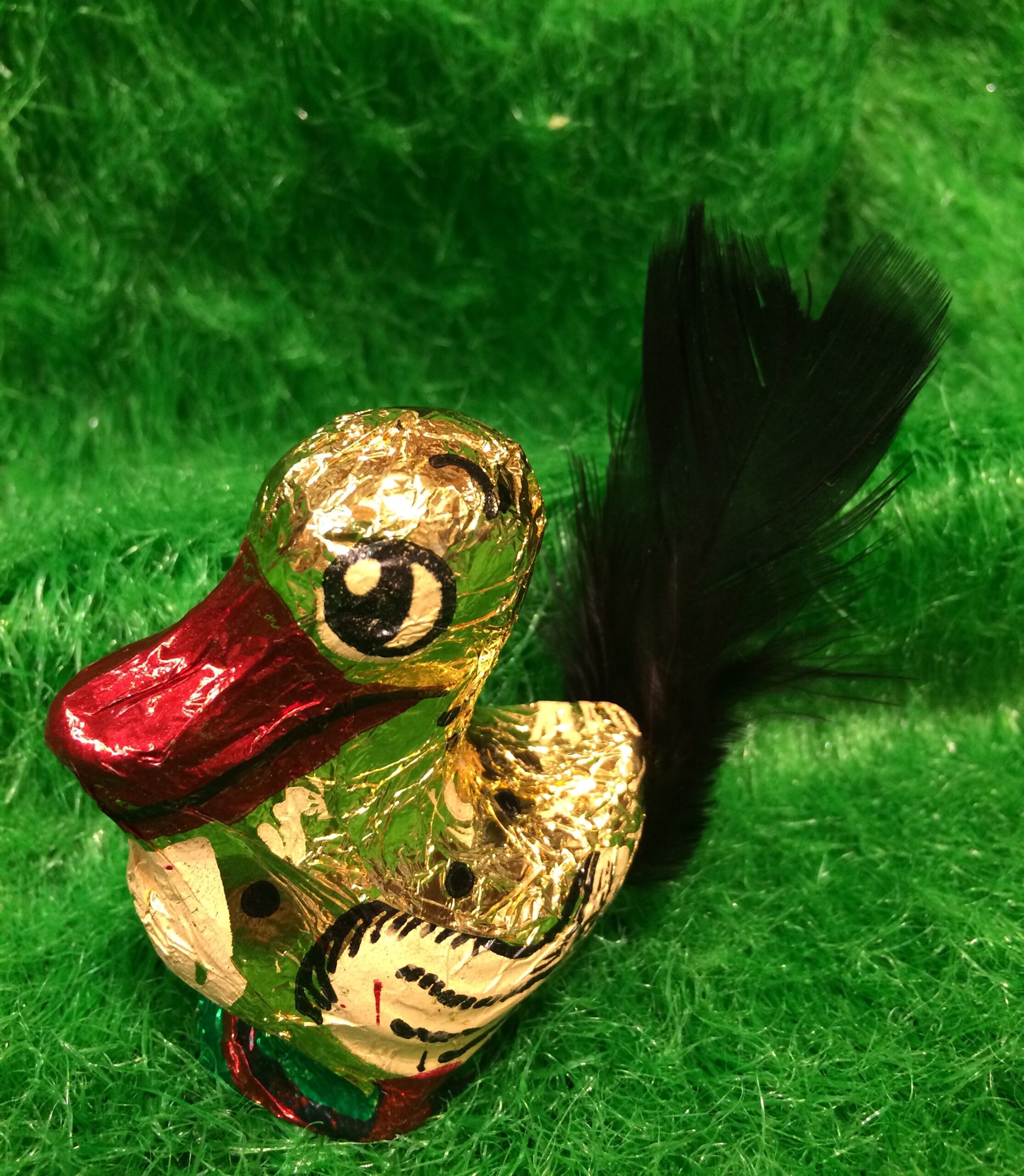 Wer sagt, dass nur Häschen in ein Osternest gehören? Das goldene Entchen ist eine wunderbare Ergänzung und herrlich lecker. Beste handgeschöpfte Vollmilchschokolade wird handverpackt in liebevoll gestaltetem Staniol. Klassische Schokofiguren, wie wir sie von früher kennen.