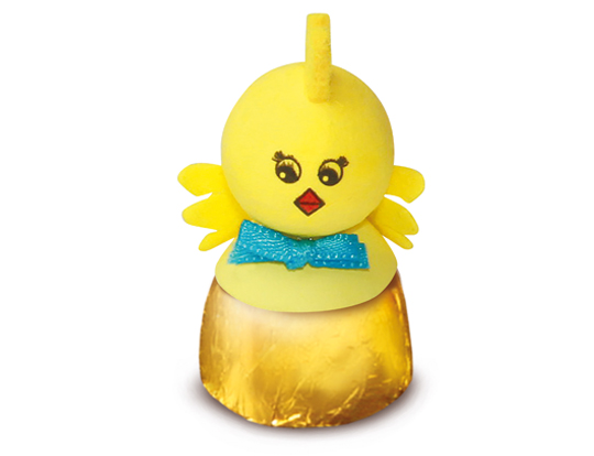 Süße Osterfigur auf Praline mit Nusskrokantfüllung (51%) in Vollmilch-Schokolade.